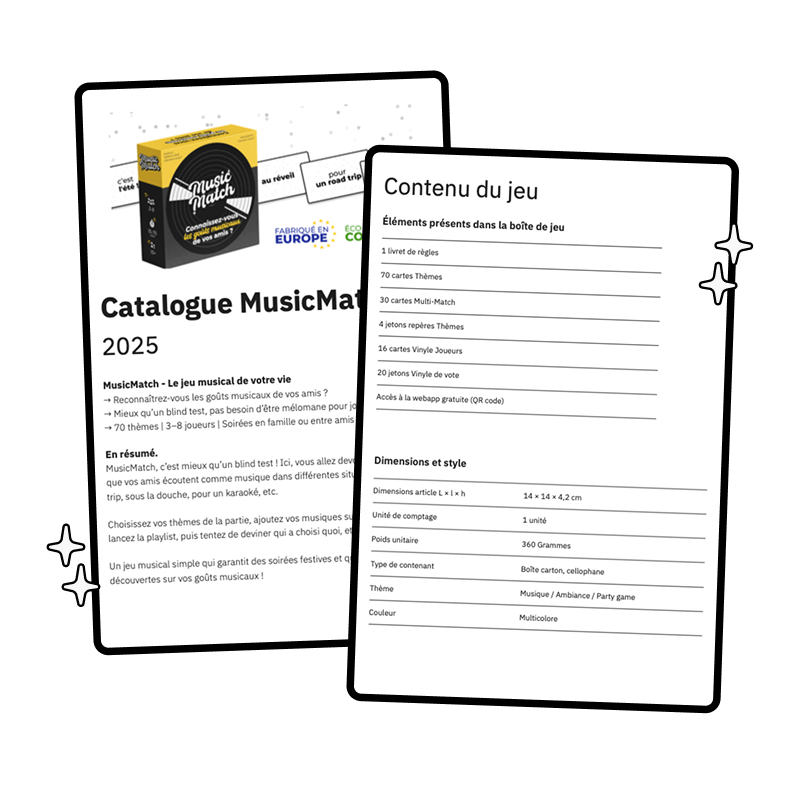 Vous souhaitez proposer MusicMatch dans votre boutique de jeux, votre librairie, votre médiathèque ou votre concept store ?